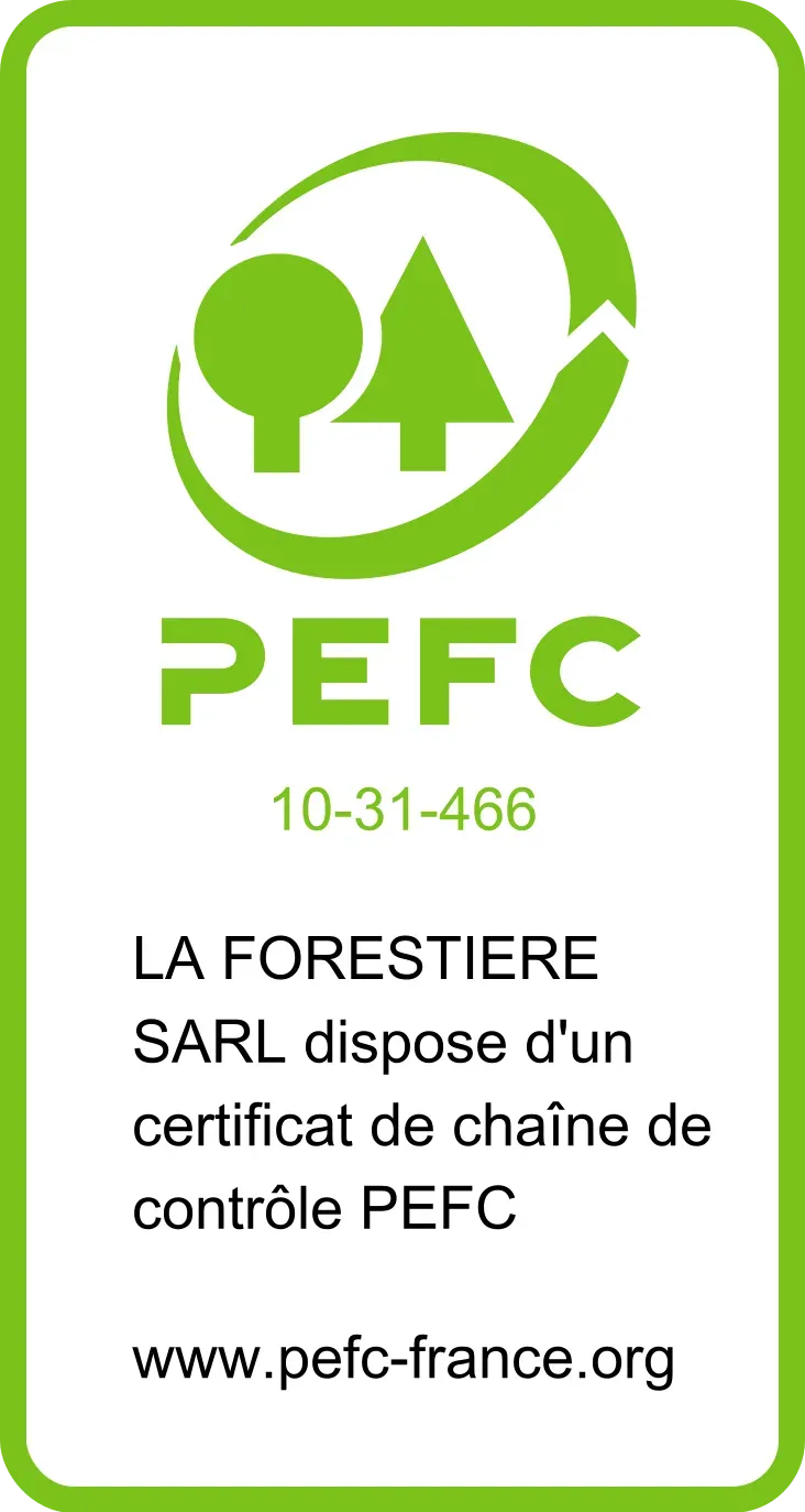 Nous avons adhéré à la certification PEFC (essentiellement pour le bois de trituration), afin de promouvoir la gestion durable de la forêt.